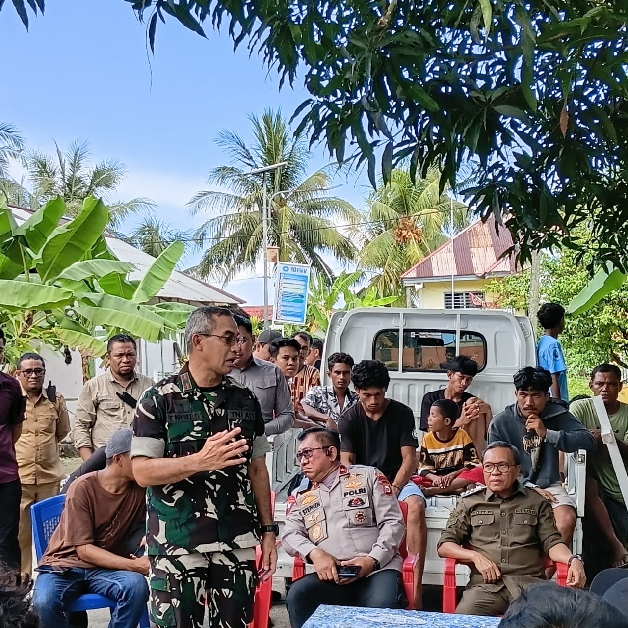 PATANI BARAT — Komandan Korem 152/Baabullah bersama Kapolda Maluku Utara melaksanakan kegiatan pengarahan kepada masyarakat Desa Sibenpopo, Kecamatan Patani Barat, Kabupaten Halmahera Tengah, sebagai langkah memastikan situasi keamanan pasca konflik telah kembali kondusif, Senin (06/04/2026).