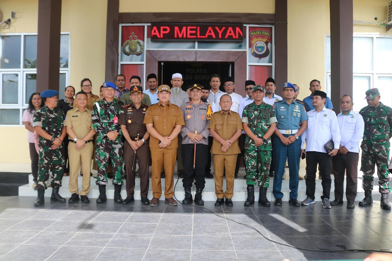 MOROTAI– Pemerintah Kabupaten Pulau Morotai bersama unsur Forkopimda, tokoh agama, dan tokoh masyarakat menggelar rapat dalam rangka “Deklarasi Damai Membangun Komitmen Bersama Memelihara Morotai Damai”, yang berlangsung di Aula Polres Pulau Morotai, Desa Daruba, Kecamatan Morotai Selatan, Senin (06/04/2026).
