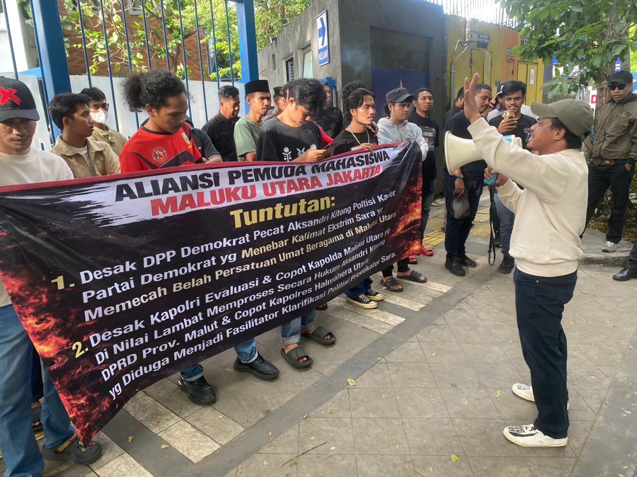 JAKARTA—Aksi demonstrasi yang digelar oleh Aliansi Pemuda Mahasiswa Maluku Utara Jakarta terus berlanjut dalam bentuk Aksi Jilid II di Kantor DPP Partai Demokrat. Aksi ini merupakan respons kolektif atas dugaan pernyataan bermuatan SARA dan provokasi ekstrem yang disampaikan oleh Aksandri Kitong melalui grup WhatsApp, yang dinilai berpotensi mengganggu keharmonisan antar umat beragama di Maluku Utara.