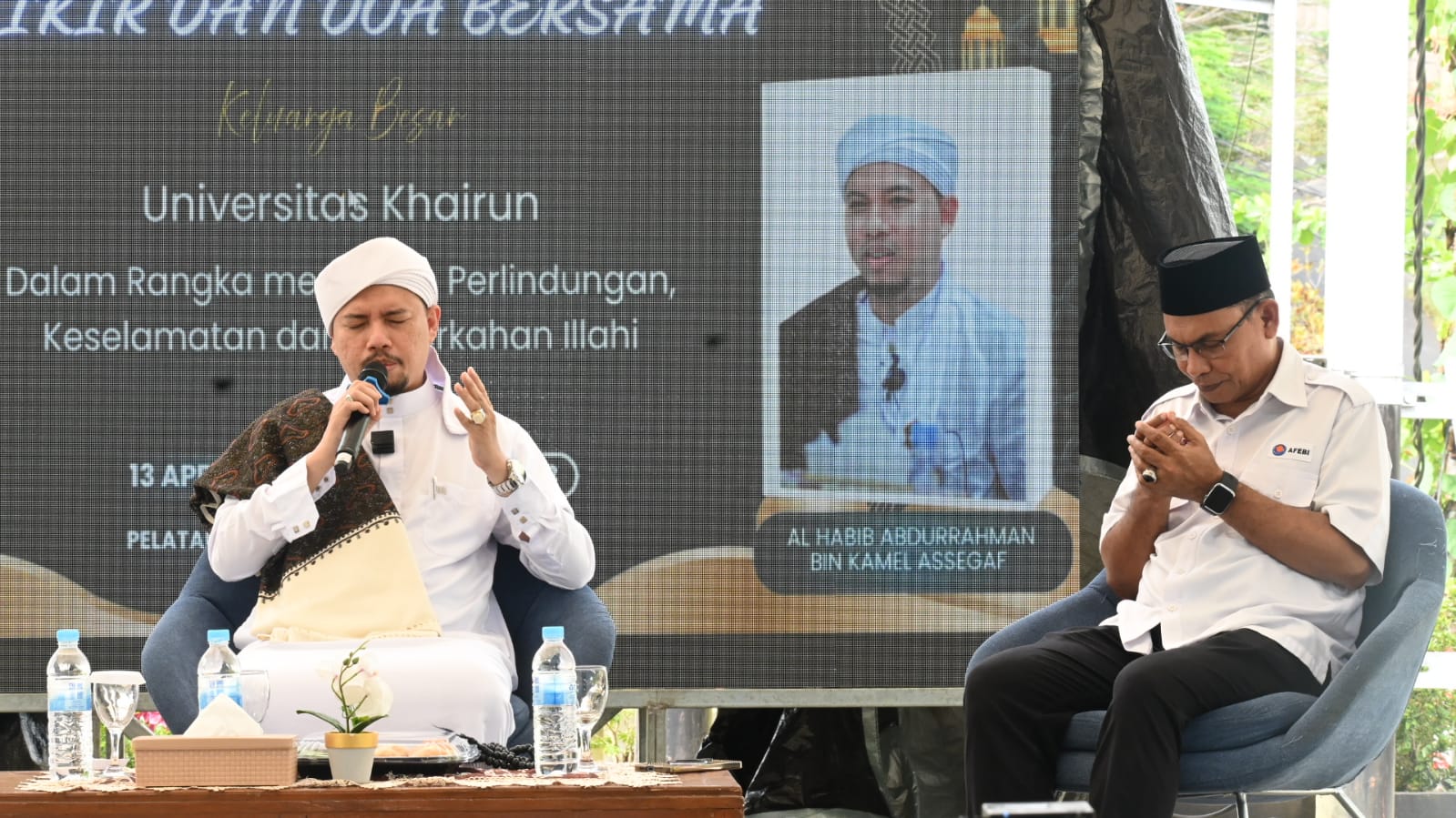 TERNATE–-Keluarga besar Universitas Khairun (Unkhair) menggelar zikir dan doa bersama di pelataran Gedung Rektorat, Kampus II Unkhair, Ternate, Senin (13/4/2026).