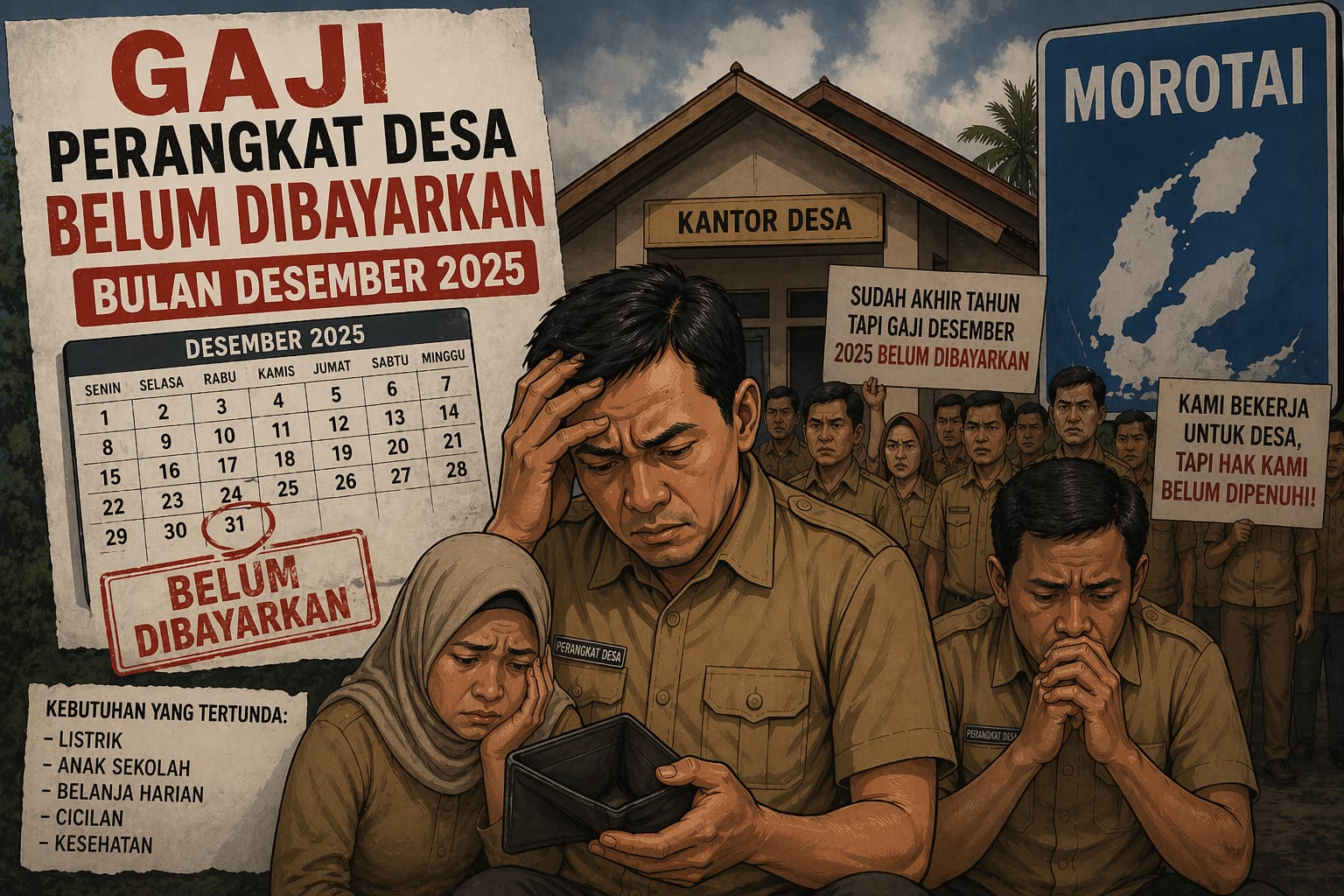 MOROTAI–Hak ribuan Perangkat Desa yang tersebar di 88 Desa se Kabupaten Pulau Morotai kembali disandera. Gaji ribuan perangkat desa belum dibayar sejak Desember 2025 hingga April 2026.